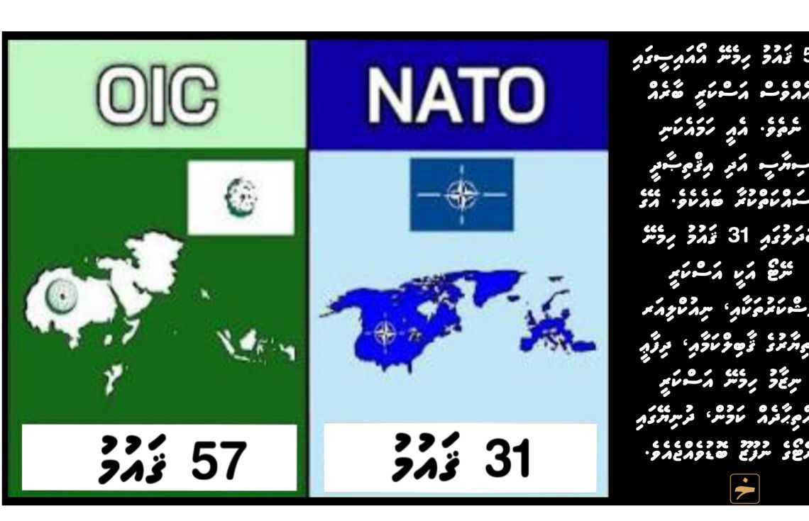 ތެދެކެވެ. ޕާކިސްތާނާއި، ތުރުކިޔޭ އާއި، އީރާނާއި، ސަޢުދީ ޢަރަބިއްޔާ ފަދަ ޤައުމުތަކުގައި އެތައް މިލިއަން މުސްލިމުންނާއި، ހެސްކިޔާފައި ތެލާއި ގޭހާއި ރަނާއި ޖަވާހިރު ފަދަ ވަޞީލަތްތަކާއި، ބާރުގަދަ ލަޝްކަރުތައް ހުރި ނަމަވެސް، މުސްލިމް ދުނިޔެއަކީ، ޤުދުރަތީ ވަޞީލަތެއް ނެތް ޔޫރަޕުން ހޯދި ނޭޓޯގެ ބާރާއި އަޅައި ކިޔާލެވޭ އިއްތިޙާދެއް ނޫނެވެ.