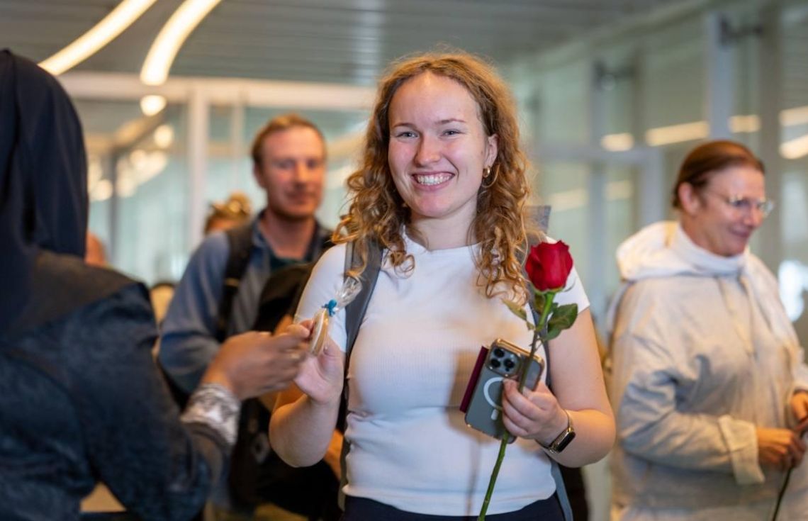 ޑިސްކަވާ އެއާލައިނުން ރާއްޖެ އައި ފަތުރުވެރިއަކަށް އެމްއޭސީލުން މަރުހަބާ ކިޔަނީ---ފޮޓޯ: އެމްއޭސީއެލް