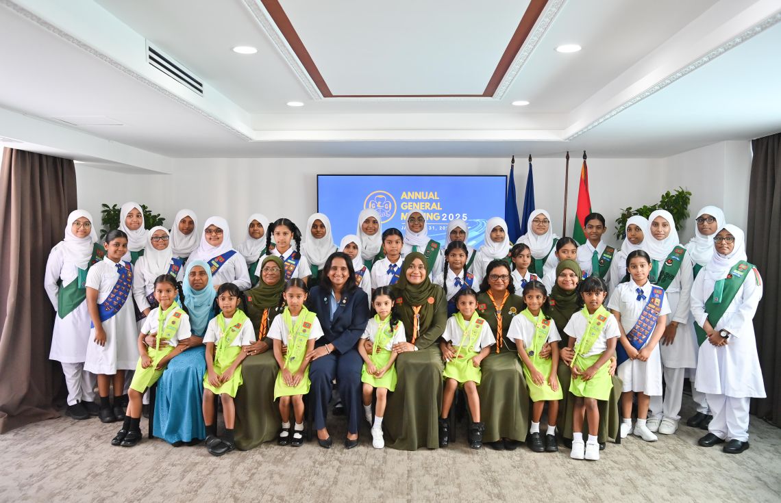 މޯލްޑިވްސް ގާލްގައިޑްސް އެސޯސިއޭޝަންގެ 2025 ވަނަ އަހަރުގެ އަހަރީ އާންމު ޖަލްސާ، ރައީސުލްޖުމްހޫރިއްޔާ ޑރ. މުޙައްމަދު މުޢިއްޒުގެ އަނބިކަނބަލުން އަދި ޗީފް ގައިޑް، މެޑަމް ސާޖިދާ މުހައްމަދު މިއަދު ޝަރަފުވެރިކޮށްދެއްވައިފި އެވެ.