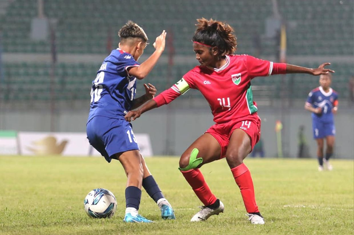 ނޭޕާލުގައި މިހާރު ކުރިއަށްދާ އަންހެނުންގެ ސާފް ޗެމްޕިއަންޝިޕުގައި ރާއްޖޭގެ ގައުމީ އަންހެން ފުޓްބޯޅަ ޓީމު ކޮޅަށް ނެޕާލުން 11 ލަނޑު ޖަހައިފިއެވެ.