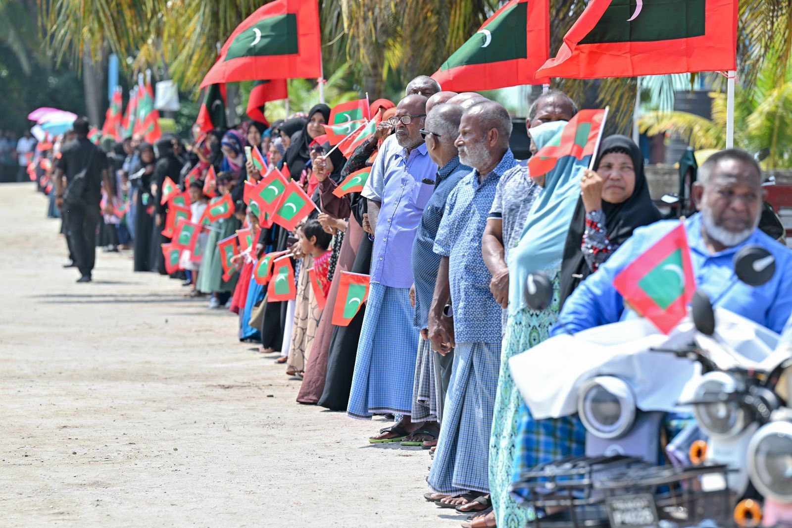 ރައީސުލްޖުމްހޫރިއްޔާ ހއ. މާރަންދޫއަށް ވަޑައިގެންނެވުމުން އެރަށު ރައްޔިތުން އެމަނިކުފާނުގެ އިސްތިޤްބާލުގައި. އަތޮޅުގެ ހުރިހާ ރަށެއްގެ ރައްޔިތުންގެ އެދުމަކީ ތަރައްޤީގެ ޕްރޮޖެކްޓުތަކުގެ ނިމުން ފާހަގަކުރެއްވުމަށް އަދި އެއްފަހަރު އެމީހުންގެ ގާތަށް ރައީސް ޑރ. މުޢިއްޒު ވަޑައިގަތުން.