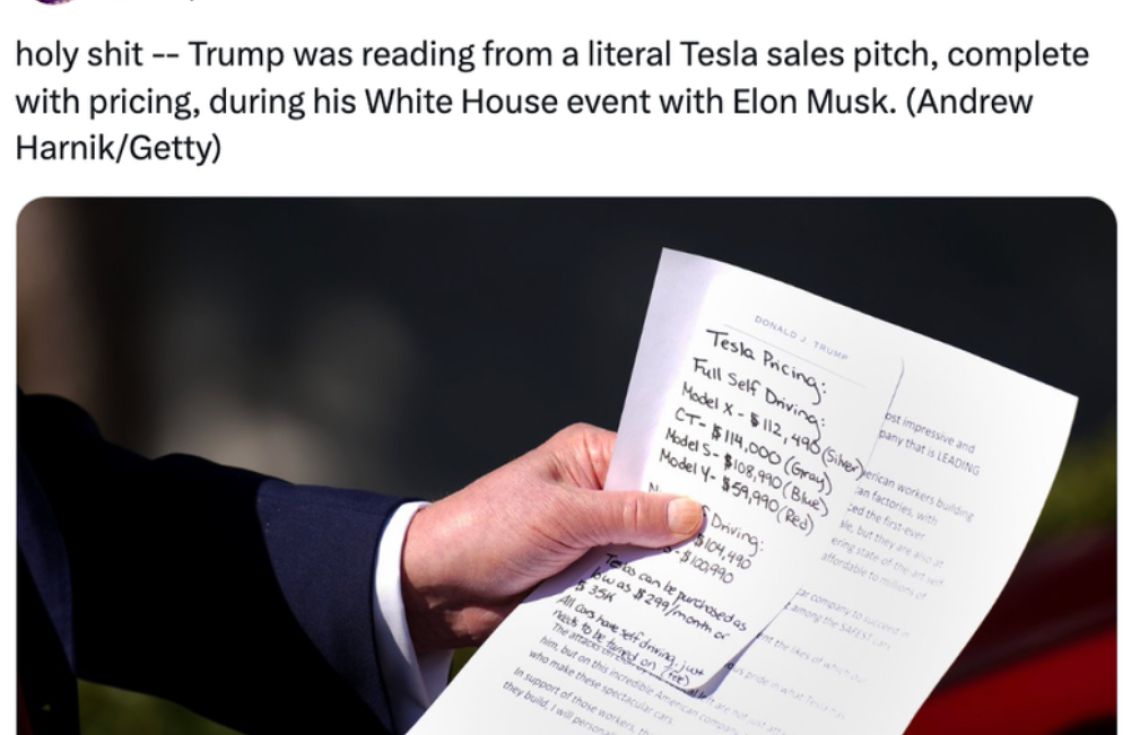 ރައީސް ޓްރަމްޕް ވަނީ ވައިޓް ހައުސްގައި އޮތް އިވެންޓެއްގައި ބްރޭންޑް ނިއު ޓެސްލާ ކާރެއް ތިމަންނާ ވެސް ގަންނާނެ ކަމަށް ވިދާޅުވެ އޭނާގެ އެޑްވައިޒަރު އެލޮން މަސްކުގެ ވިޔަފާރި ޕްރޮމޯޓް ކޮށްފައެވެ.