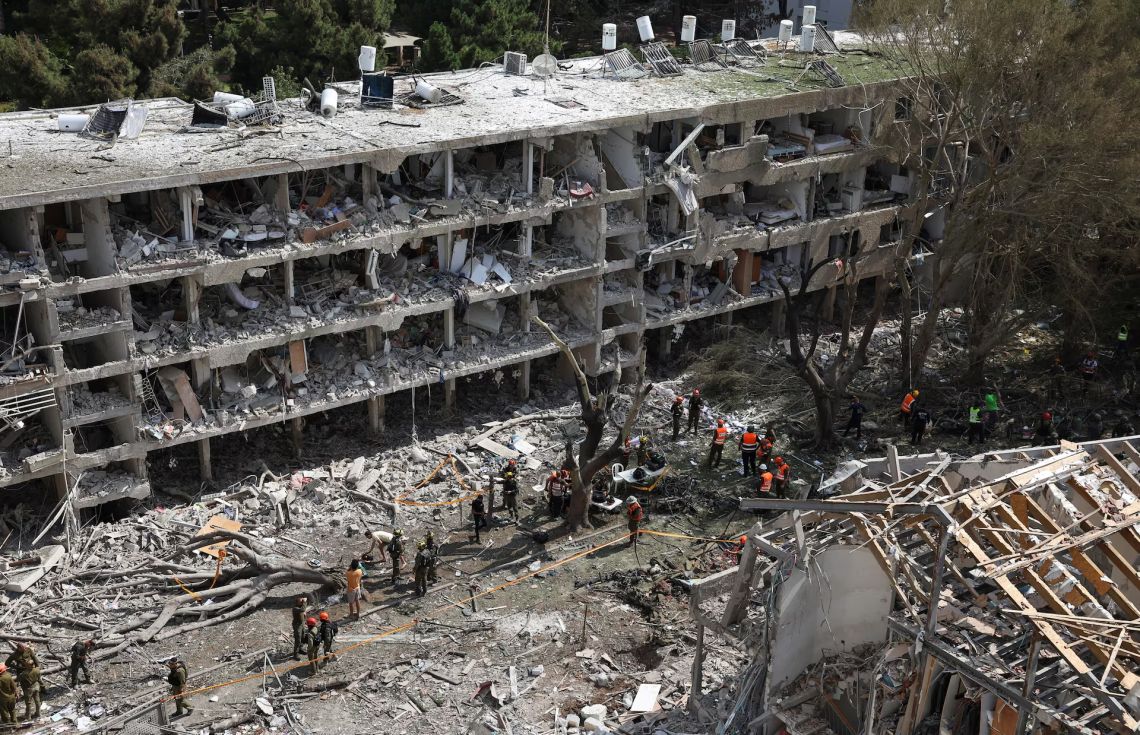 އީރާނުން ފޮނުވައިލި މިސައިލެއް އަމާޒުވެ އިޒްރޭލުގެ ޢިމާރާތެއް ފުނޑިފައި / ފޮޓޯ: އޭޕީ